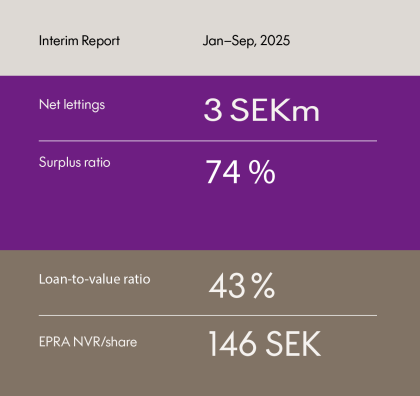 We have a clear strategy for our property portfolio, with a geographical focus on selected districts in high demand in the Stockholm area. Through good market knowledge, efficient property management with our own staff, a high level of service and flexibility and a stable financial position, we are able to create value for our owners and other stakeholders.
