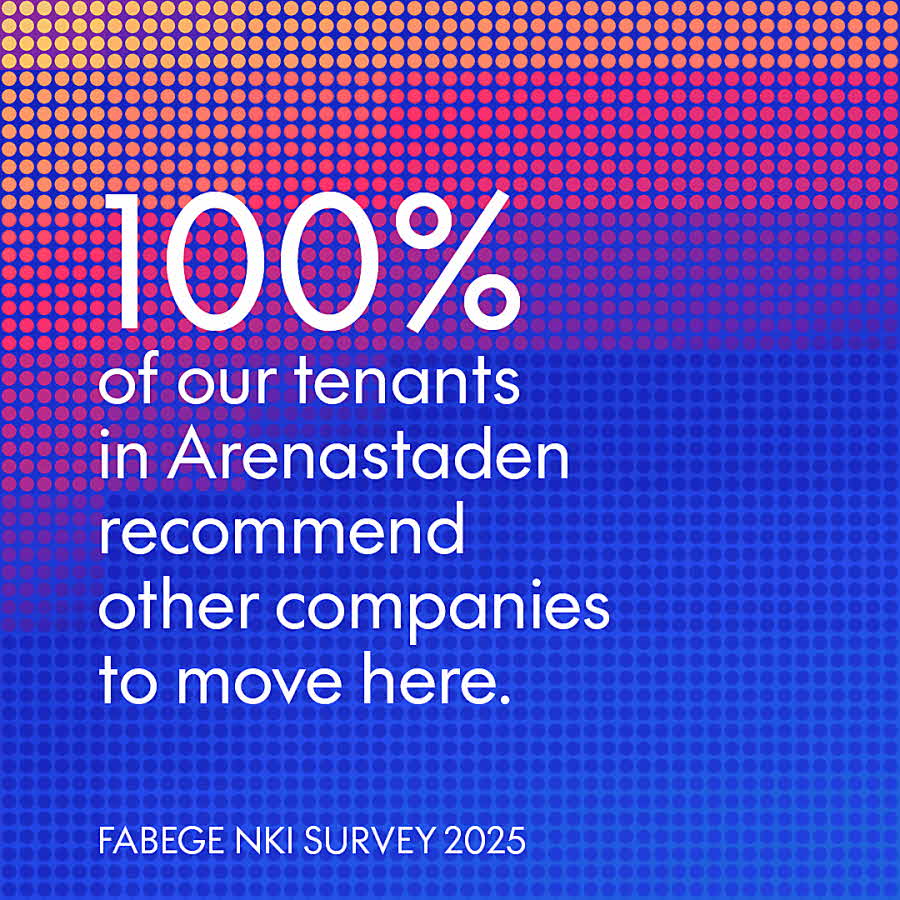 As a major property owner in Arenastaden, we take comprehensive responsibility for the area as a whole. Over the past two decades, Fabege has transformed the former industrial site into one of Sweden’s modern urban districts, designed with people at its heart and now home to some of the country’s most prominent brands. For us, sustainable urban development is about the whole person, the whole company, the whole place – all the time. Read more about Arenastaden's development >