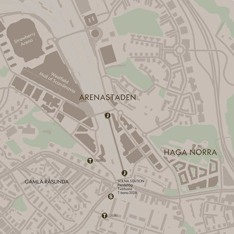 Ett stenkast från Arenastaden med Westfield Mall of Scandinavia och Strawberry Arena.