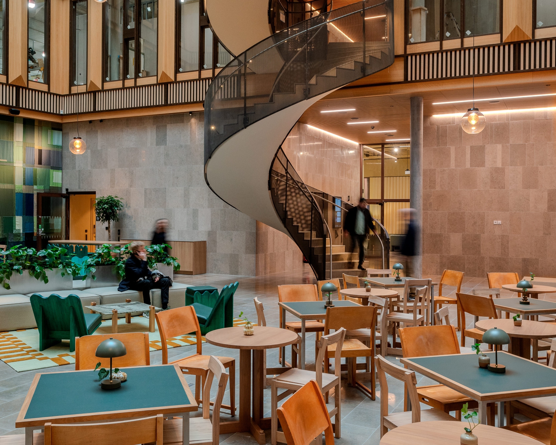 Byggnaden är miljöcertifierad enligt BREEAM-SE med högsta betygsnivån "Outstanding" – vilket säkerställer en hållbar, energieffektiv och framtidssäkrad arbetsmiljö.