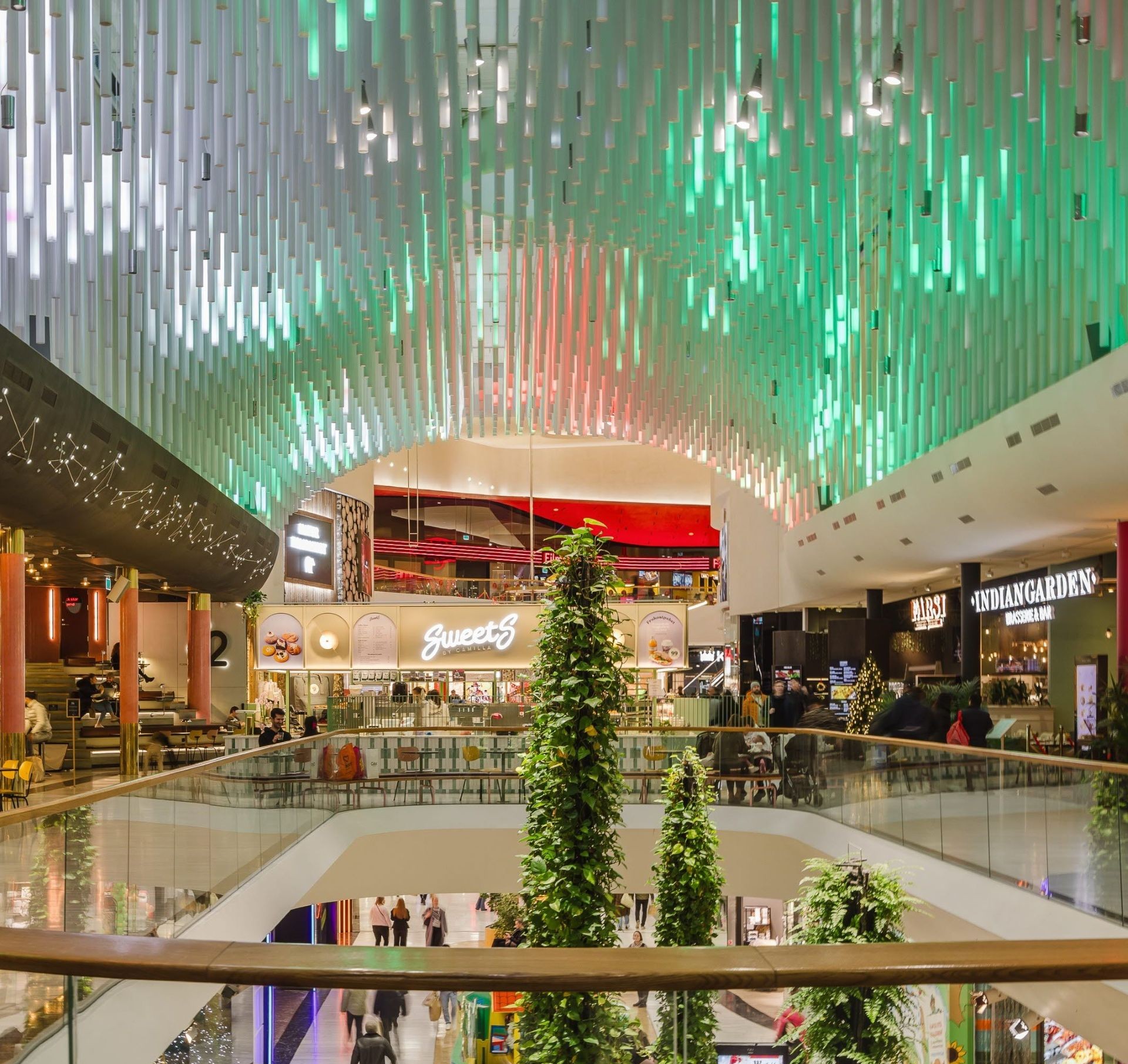 En del av Arenastaden med Westfield Mall of Scandinavia och Strawberry Arena.
