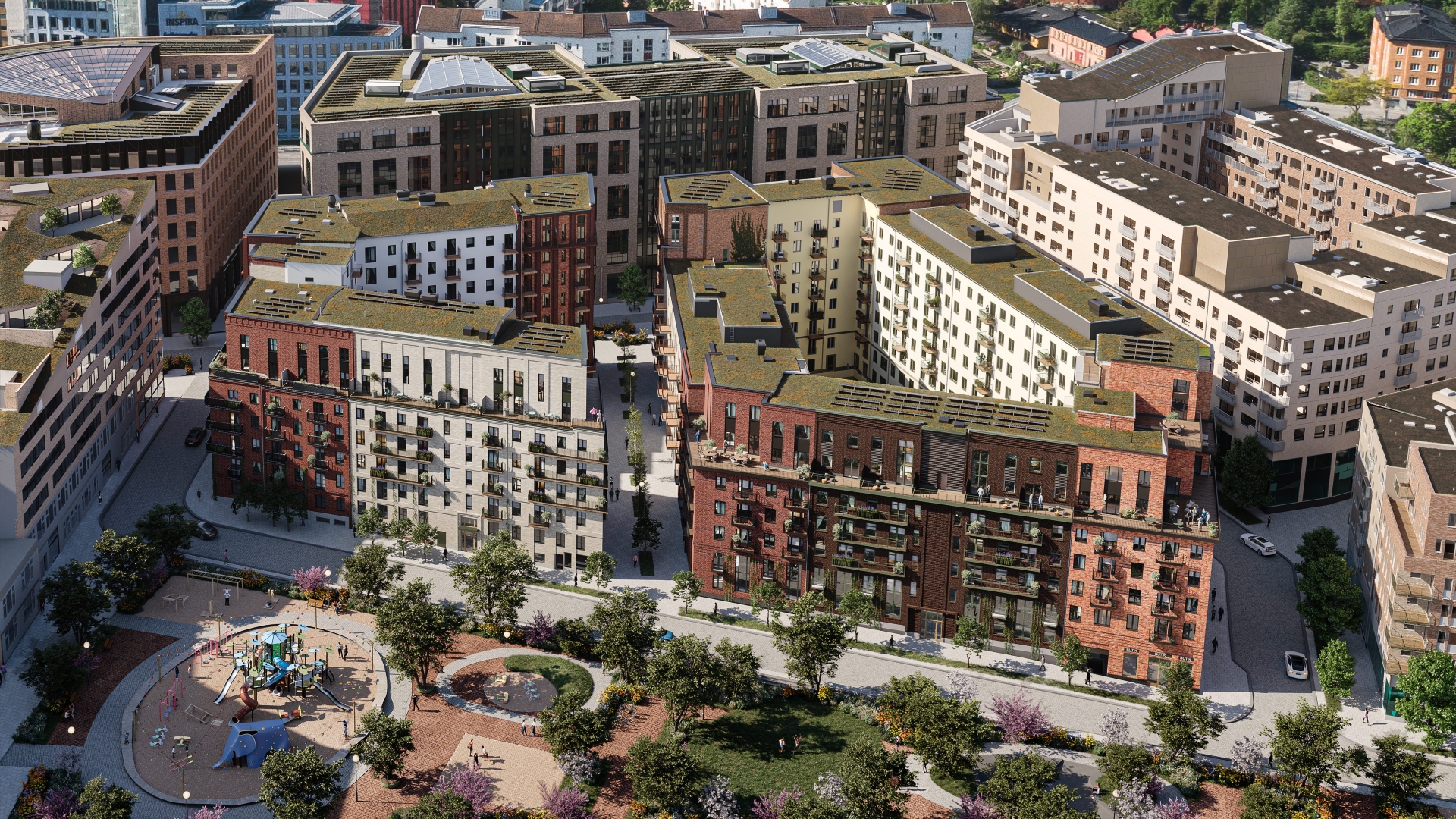 Lägenhet, studio eller townhouse? I området utvecklar vi cirka 1 000 bostäder för alla behov – allt från unika stadsradhus på taket, till stora våningar och mindre studiolägenheter.