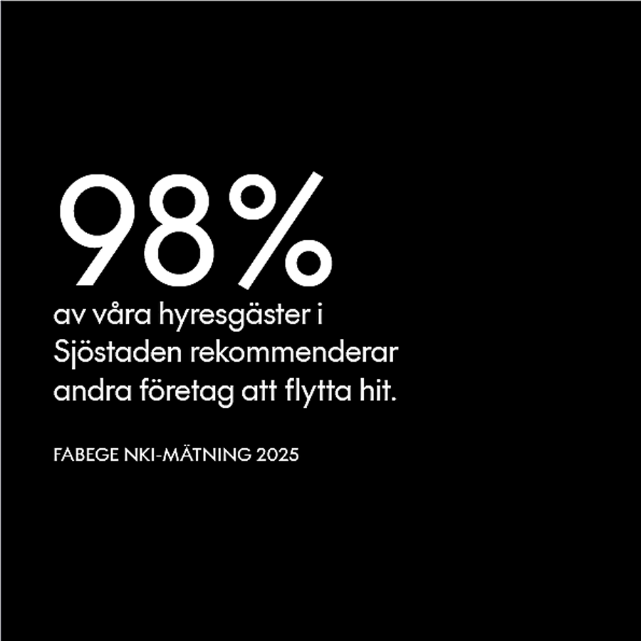 I Sjöstan hittar du din professionella mittpunkt – strax utanför innerstaden. Här finns både små och stora företag, myndigheter, arkitekter, växande techbolag och världskända varumärken kombinerat med trivsamma bostadsområden och kluckande kajer - vackert beläget vid vattnet. Med utmärkta kommunikationer och närhet till både stadspuls och grönområden är det en idealisk plats för företag som vill växa söder om stan.