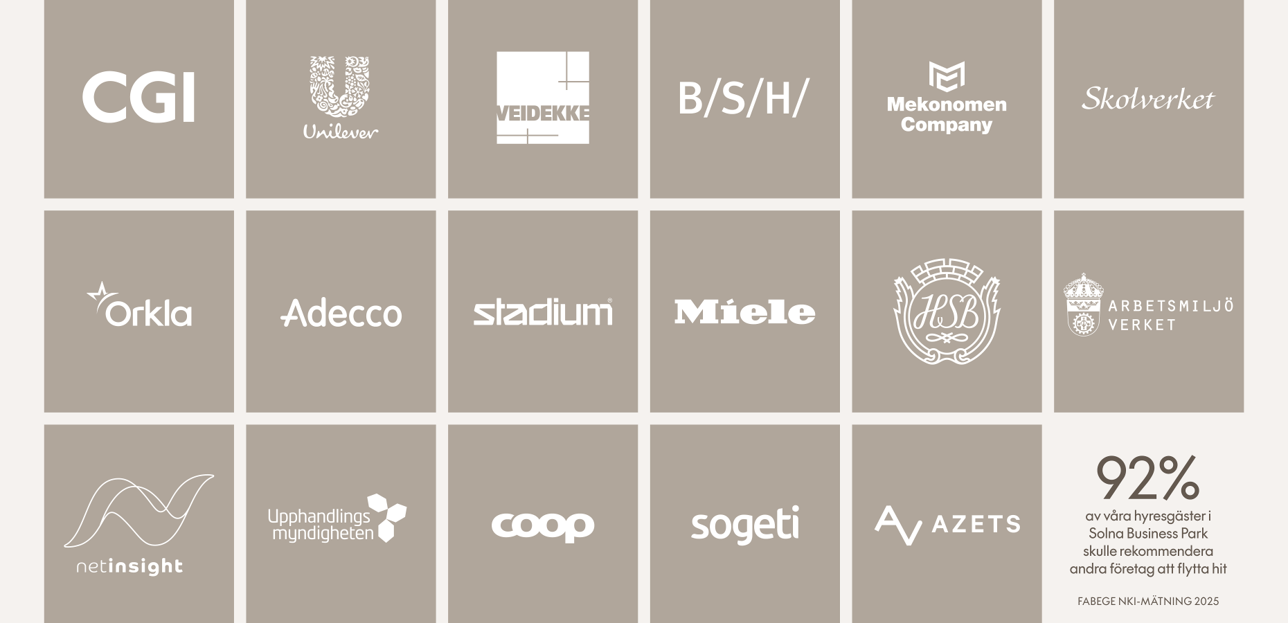 Solna Business Park är idag ett av Stockholms bästa områden för företag och deras anställda. Med det bästa kommunikationsläget efter T-centralen, bra service och spännande grannar utgör området en viktig arena för företag och medarbetare.