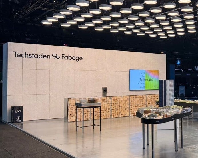 Vår monter på Techarena i Strawberry Arena är byggd med minimalt klimatavtryck och bestod till 99% av återbrukat material.