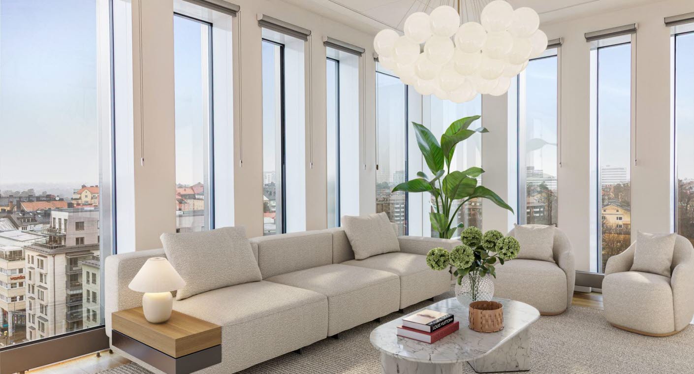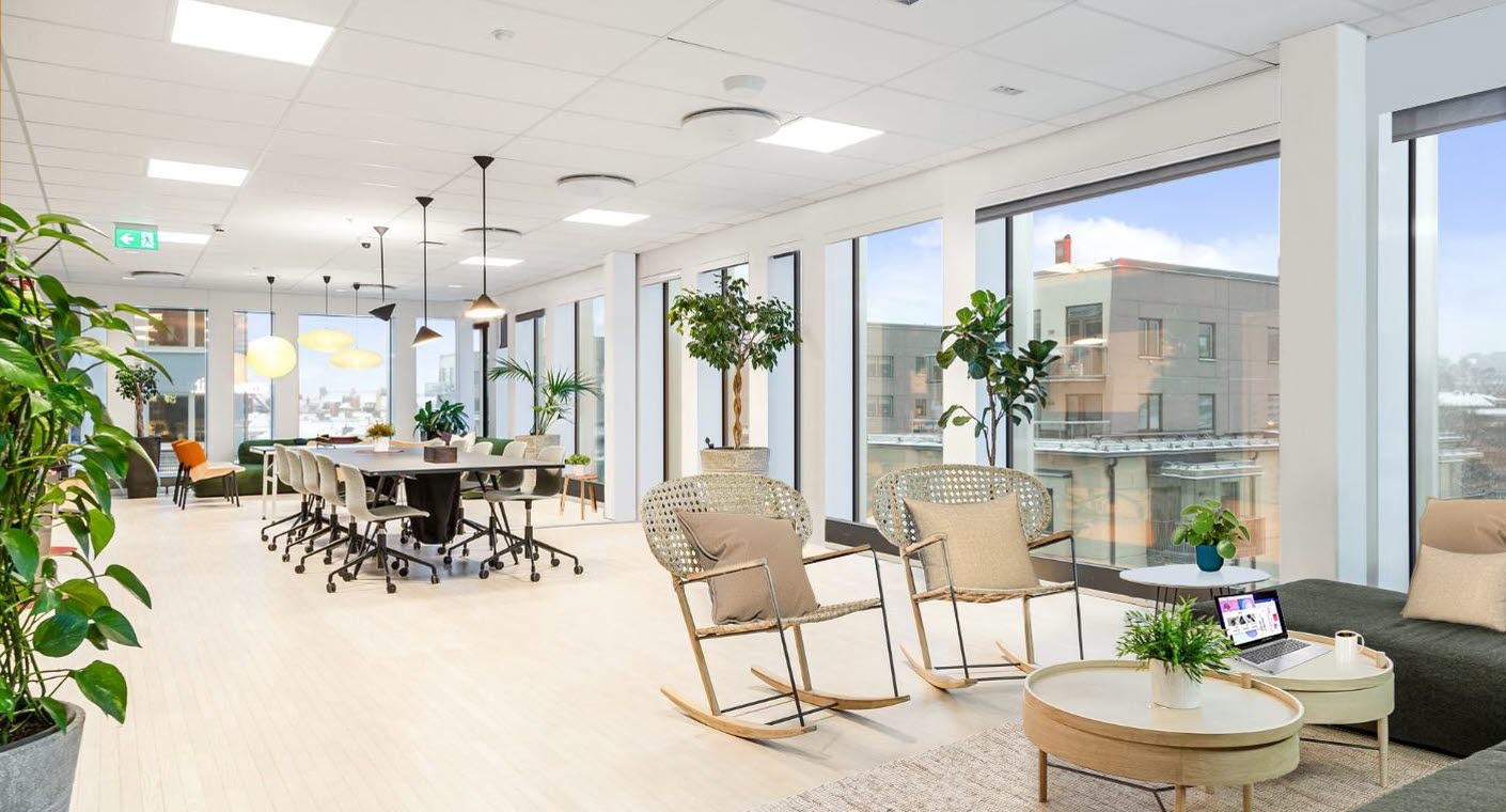 Lokalerna är välplanerade med flera kontorsrum i olika storlekar samt öppna, sociala ytor som passar lika bra för samarbete som för fokuserat arbete. Det höga läget ger ett härligt ljus under både för- och eftermiddag, vilket skapar en ljus och luftig atmosfär hela dagen.