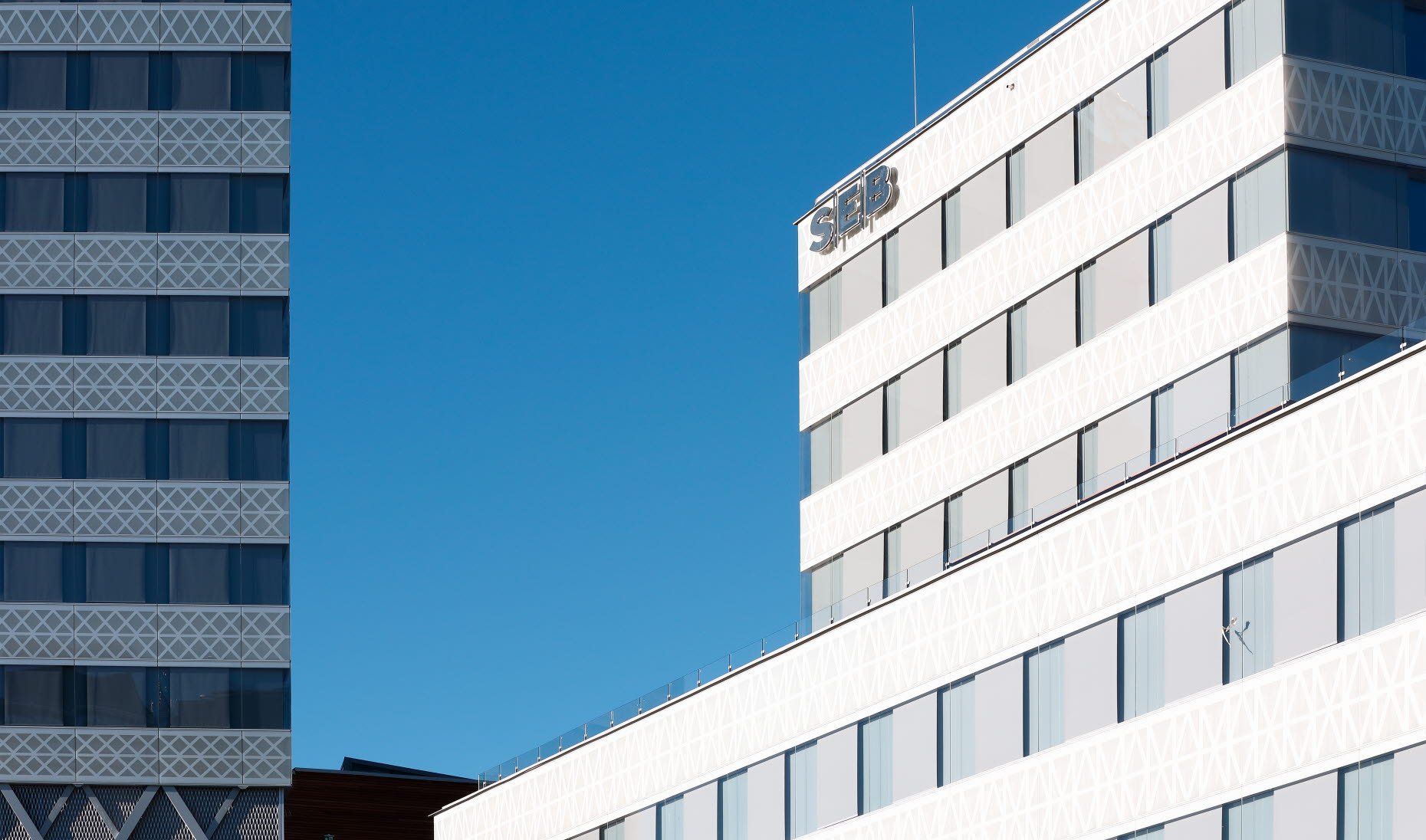 SEB-huset med sin vackra fasad möter och hälsar dig välkommen när du kommer till Arenastaden.
