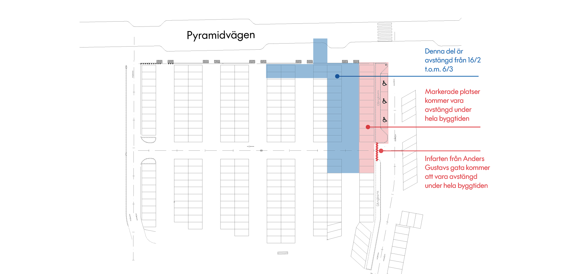 Biltrafik hänvisas till Pyramidvägen.