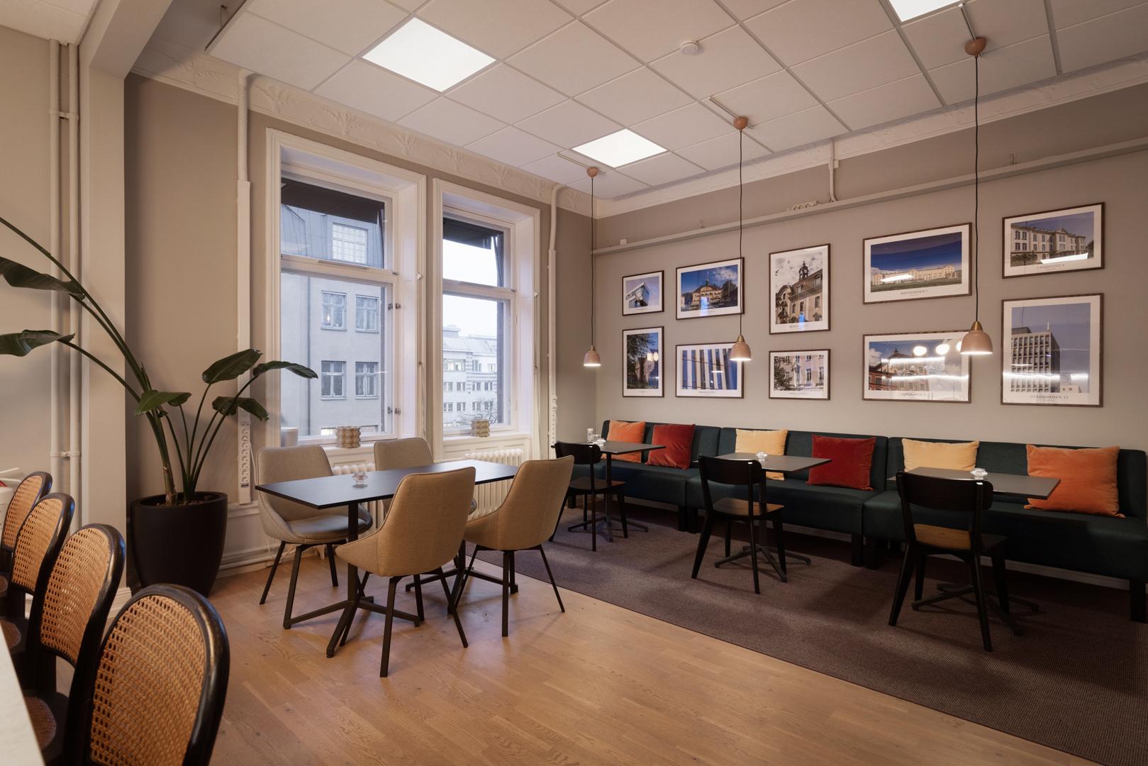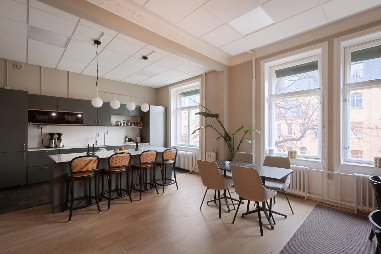 Lokalen har tidstypiska detaljer som vackra trägolv, stuckaturer och högt i tak. Här får du även stora vackra fönster med härligt ljusinsläpp.