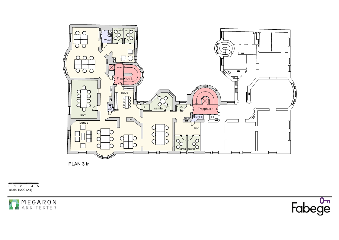 Bra planlösning som ger möjlighet till både öppna kontorsytor samt rum för arbetsplatser, möten och spontana samtal.
