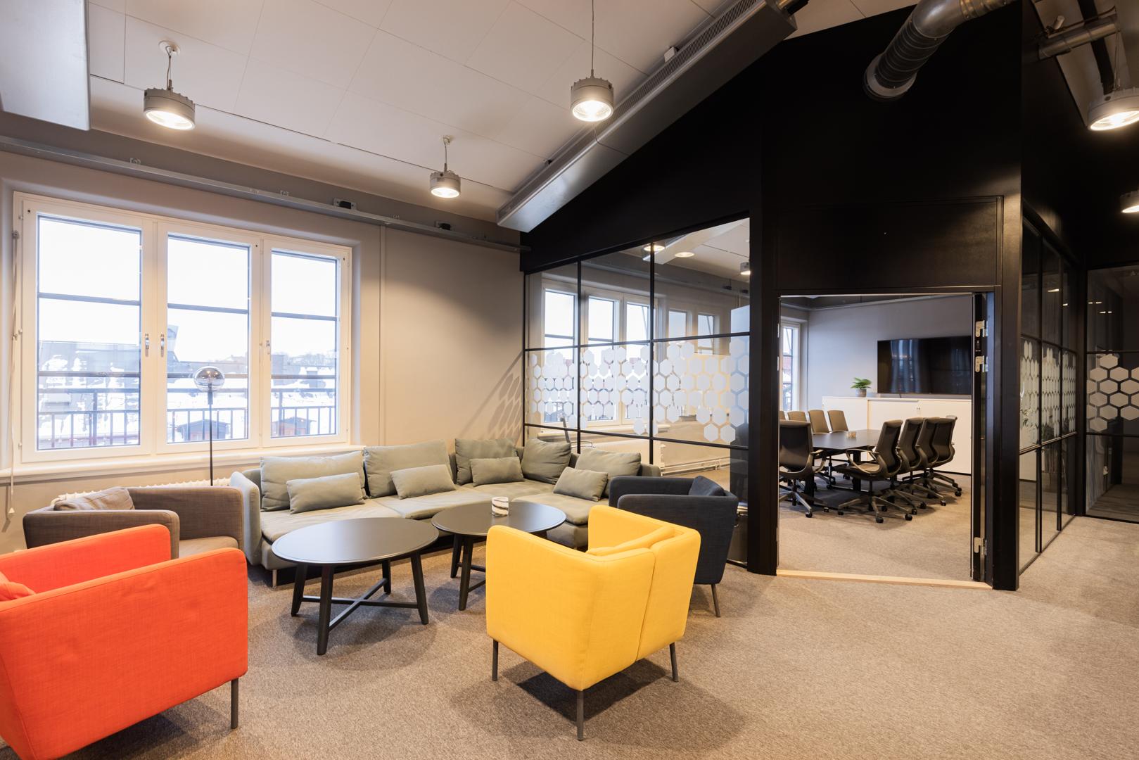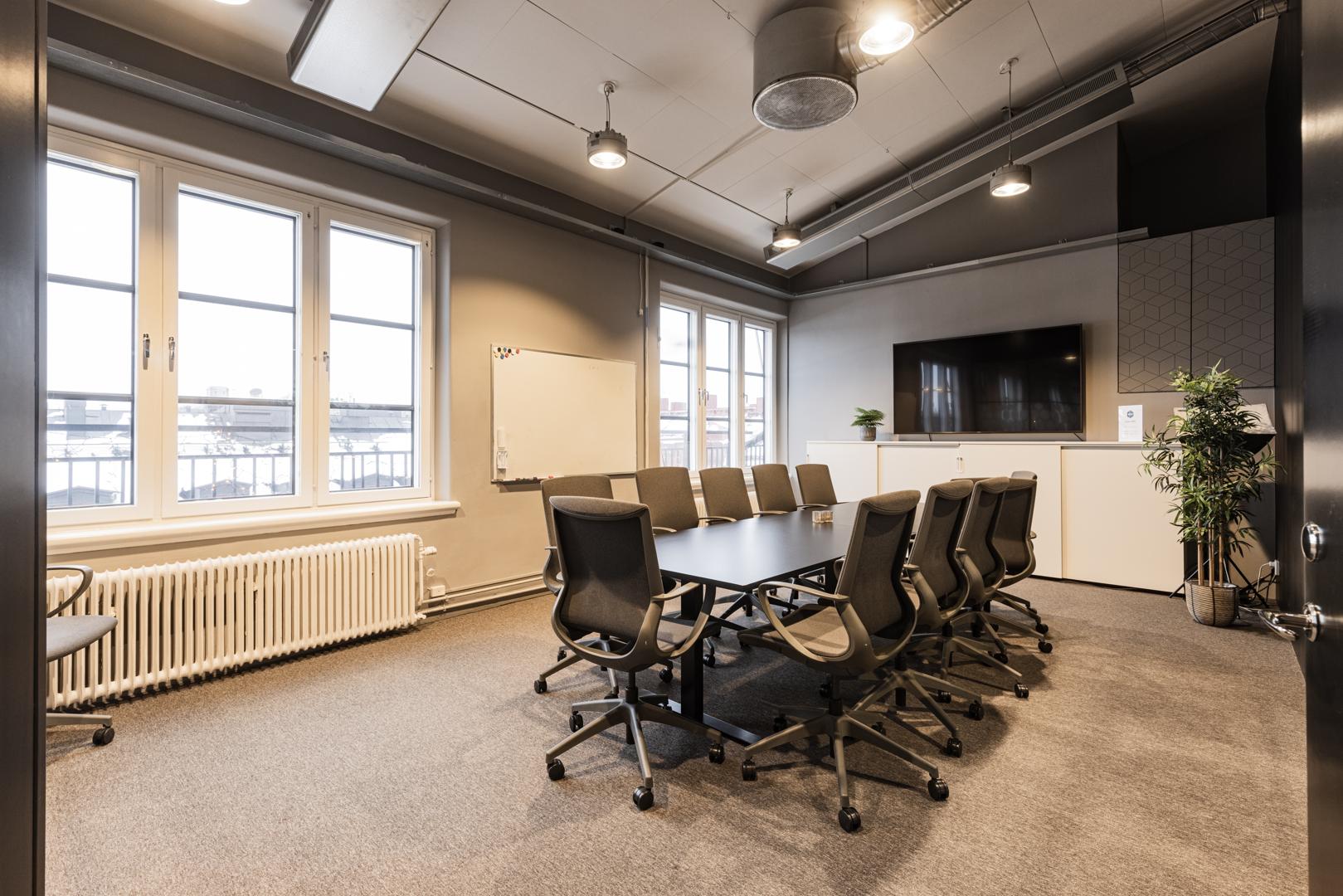 Fin kontorslokal högst upp i en fastighet med tydlig industrikaraktär. Öppet kontorslandskap och två mötesrum varav ett större för ca 14 personer och ett mindre för ca 6 personer. Inbjudande pentry med utgång till egen terrass. I fastigheten finns garage för bilar och cyklar samt omklädningsrum för dam och herr med dusch och möjlighet att hyra privata skåp. Här har du också cykelpump, cykeltvätt och skåp för laddning av elcykelbatterier. Lokalen har 2 st WC varav ett har dusch.