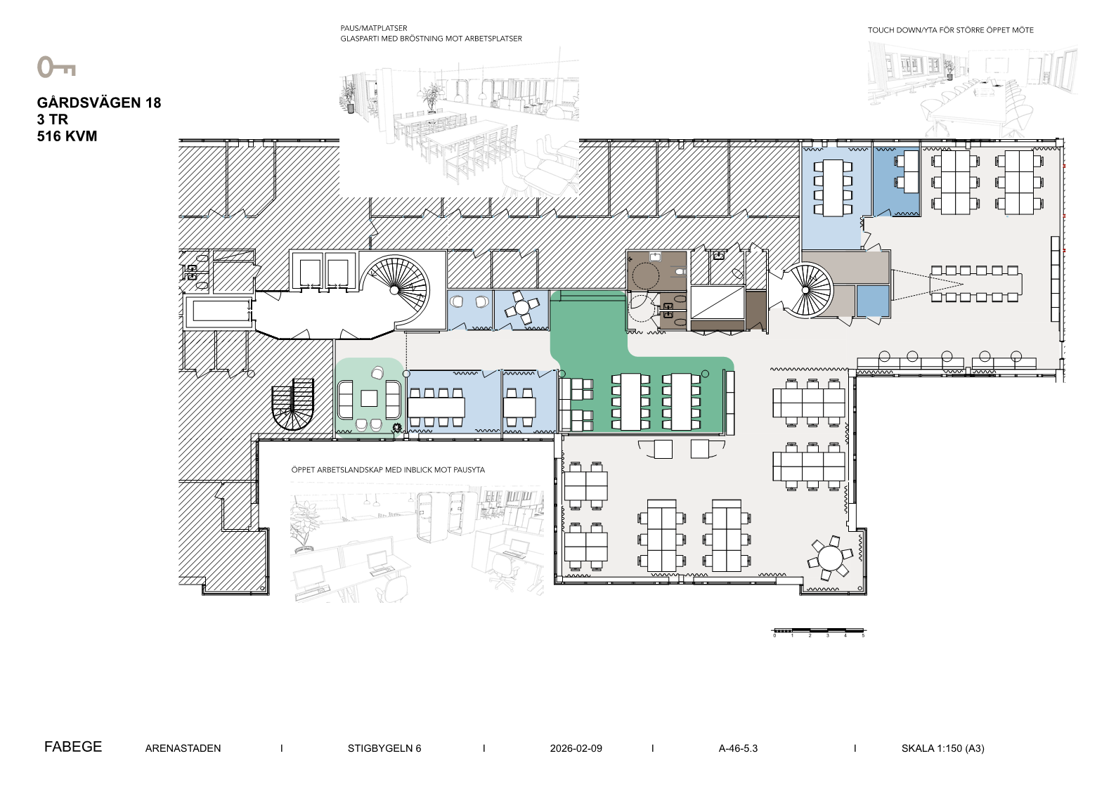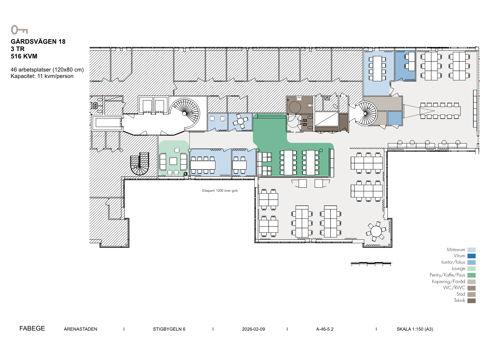 Ljus kontorslokal med attraktiv läge invid pendeltågstationen mitt i Arenastaden. Miljöcertifierad fastighet. Lokalen är mycket välplanerad med ett flertal kontorsrum i varierande storlek samt öppna sociala ytor som också fungerar bra som kontorslandskap. Lokalen kommer anpassas till kommande hyresgäst. I fastigheten finns konferens, cykelförvaring, duschar och omklädningsrum. Mittemot fastigheten finns ett parkeringsgarage med möjlighet till laddning av el-bil.