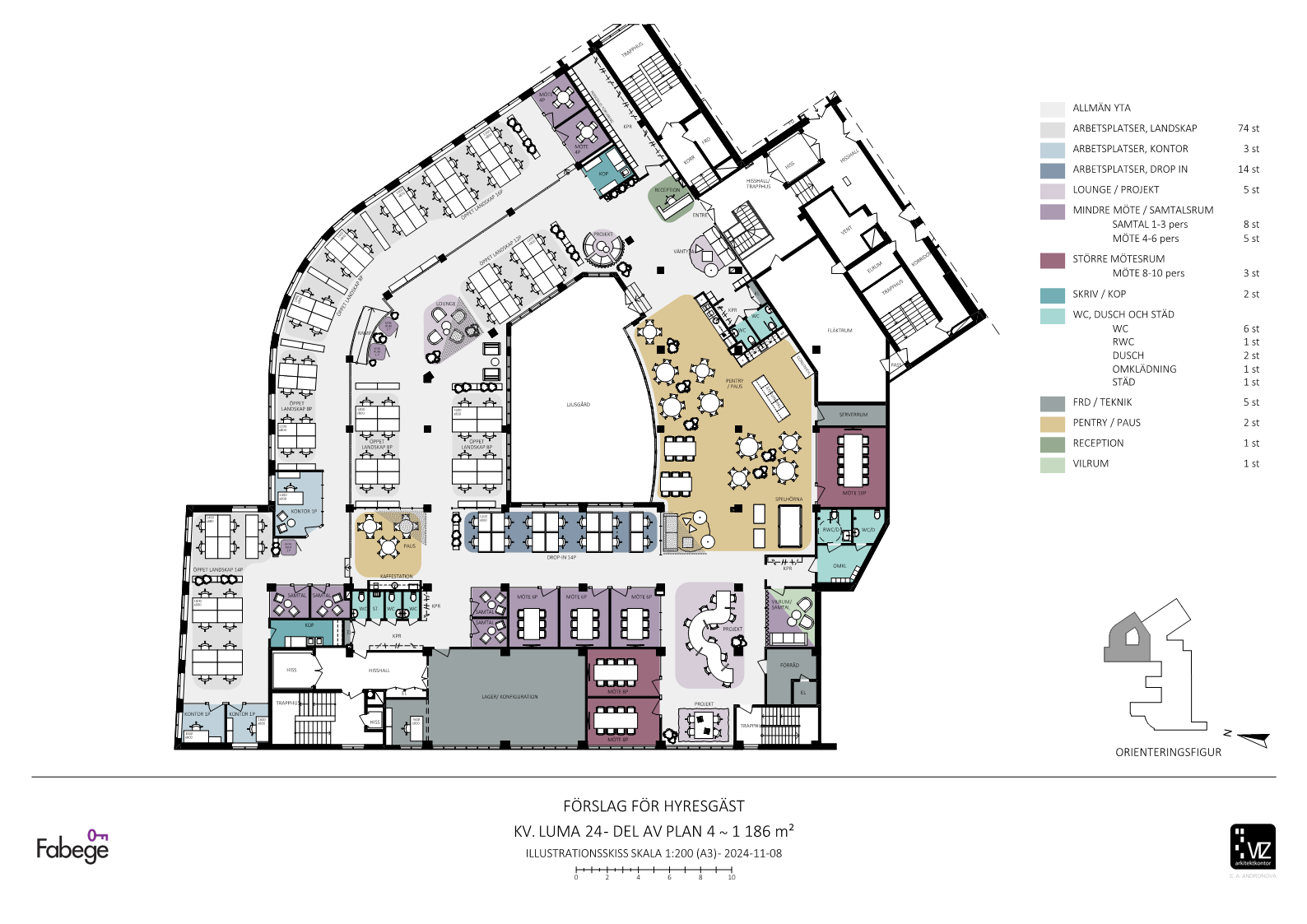 Lokalens storlek uppgår till 1 183 kvm där ni har möjlighet att vara med och skapa en produkt för ert företag att trivas i. Utöver den egna lokalen erbjuds all tänkbar service i huset, för att nämna några finns restaurang, café, gym (SATS), konferensanläggning, omklädning, parkering för både bil och cykel.