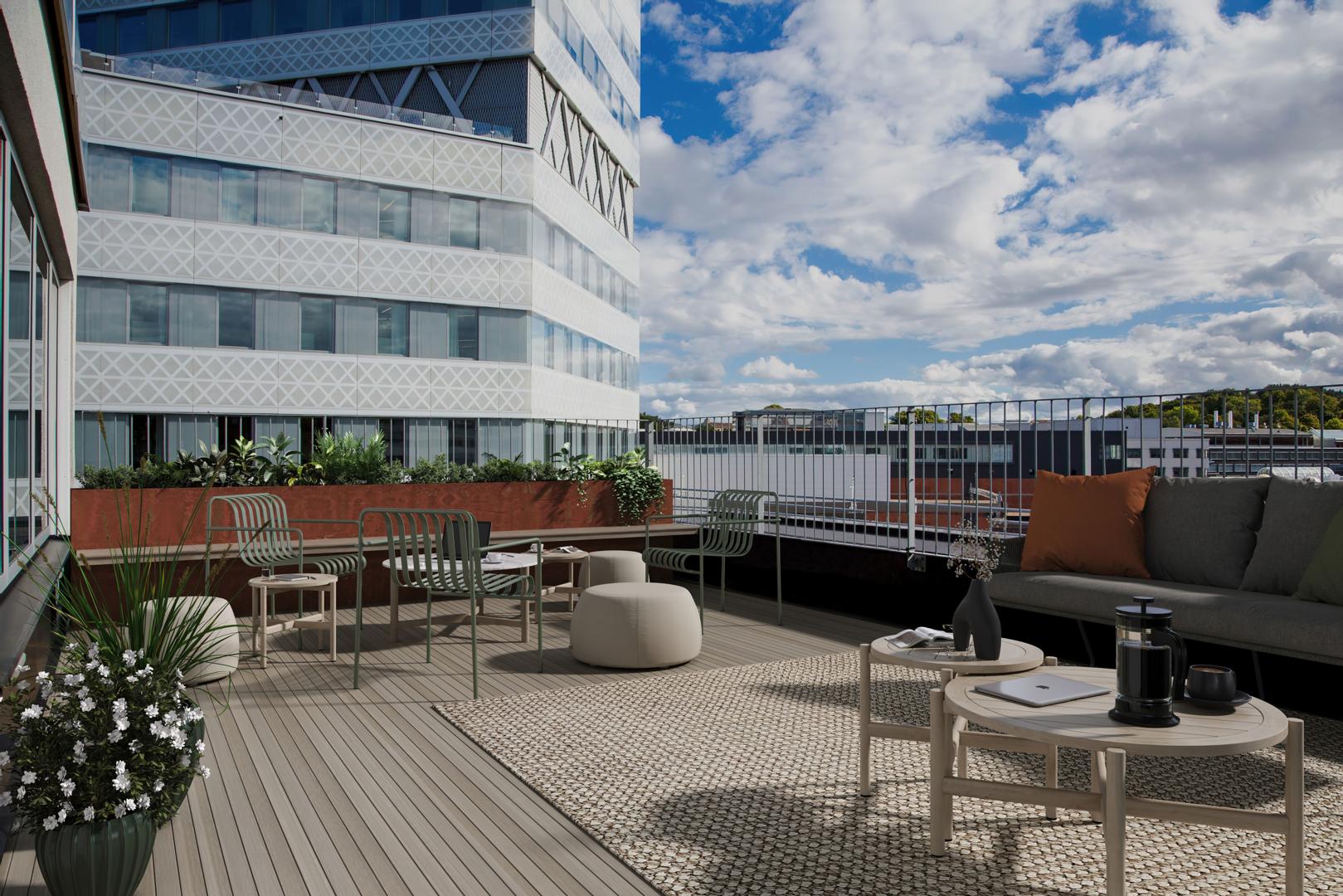 Representativ kontorslokal med terrasser högst upp och dessutom mitt i Arenastaden