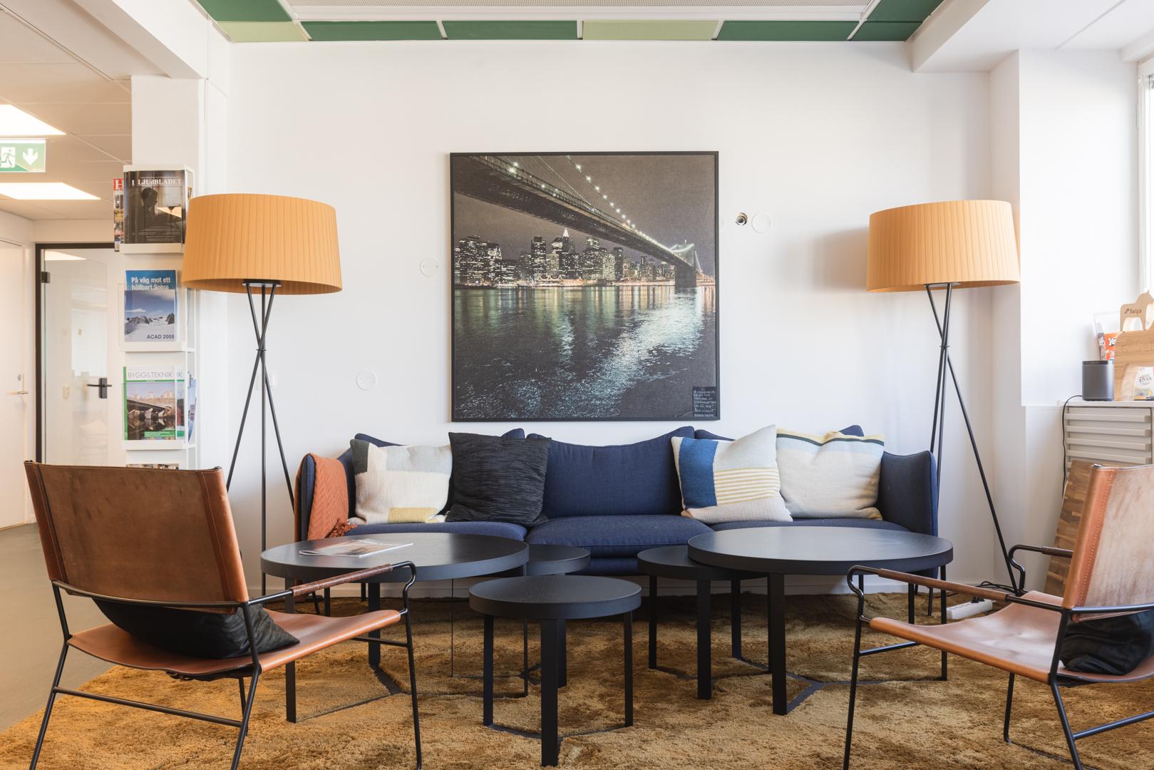 På 4 tr finns den här ljusa, moderna och trivsamma lokalen som passar företaget med ca 25-35 medarbetare och som värdesätter närheten till Odenplan och innerstadens service samtidigt som man har Brunnsviken och Hagaparken på andra sidan gatan. Lokalen har fönster åt två håll vilket ger et härligt ljus.