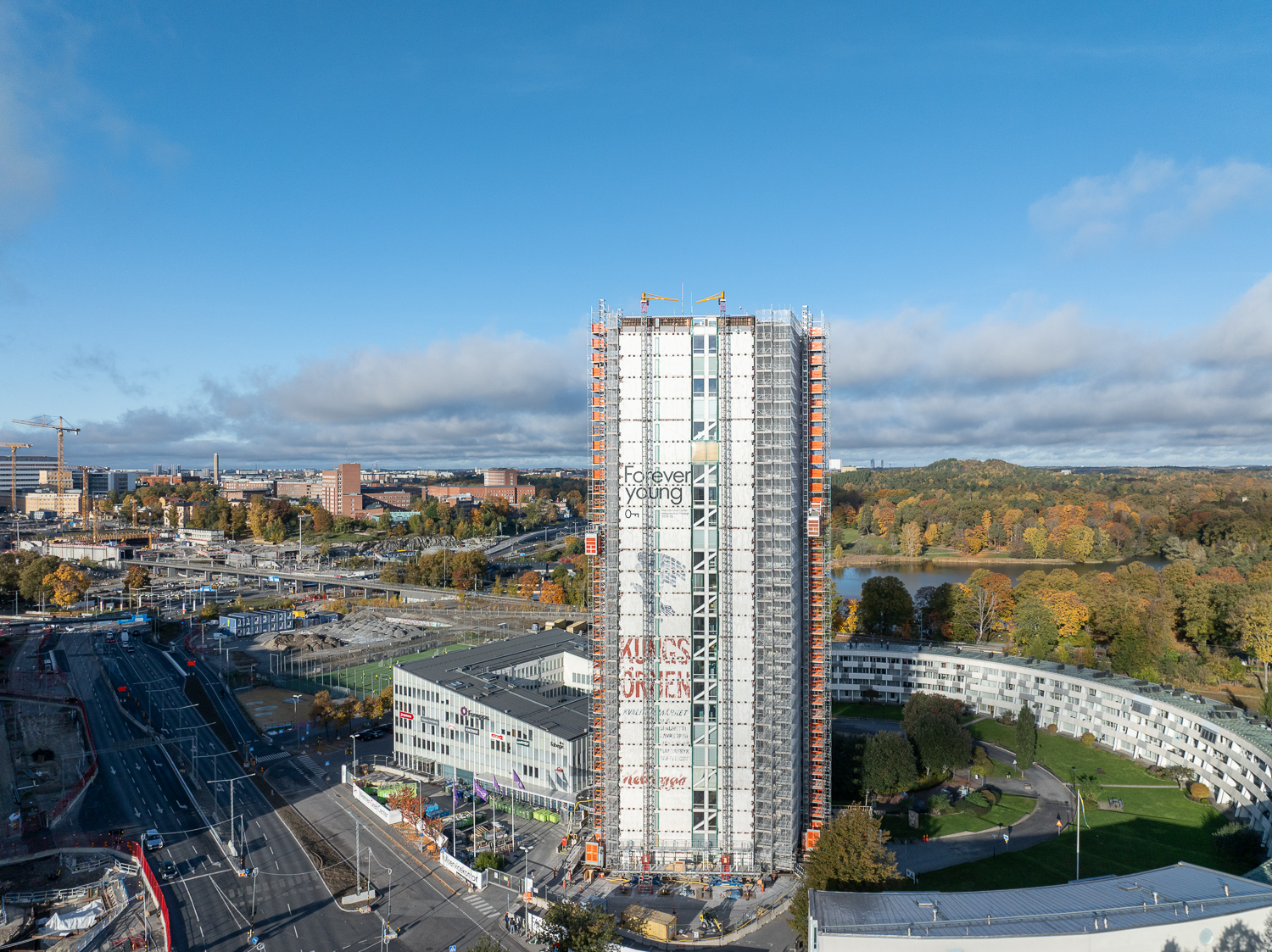 Den nya målningen, Forever Young c/o Fabege, pryder fastigheten under några veckor innan den nya fasaden monteras – men budskapet lever vidare som en hälsning till framtiden.