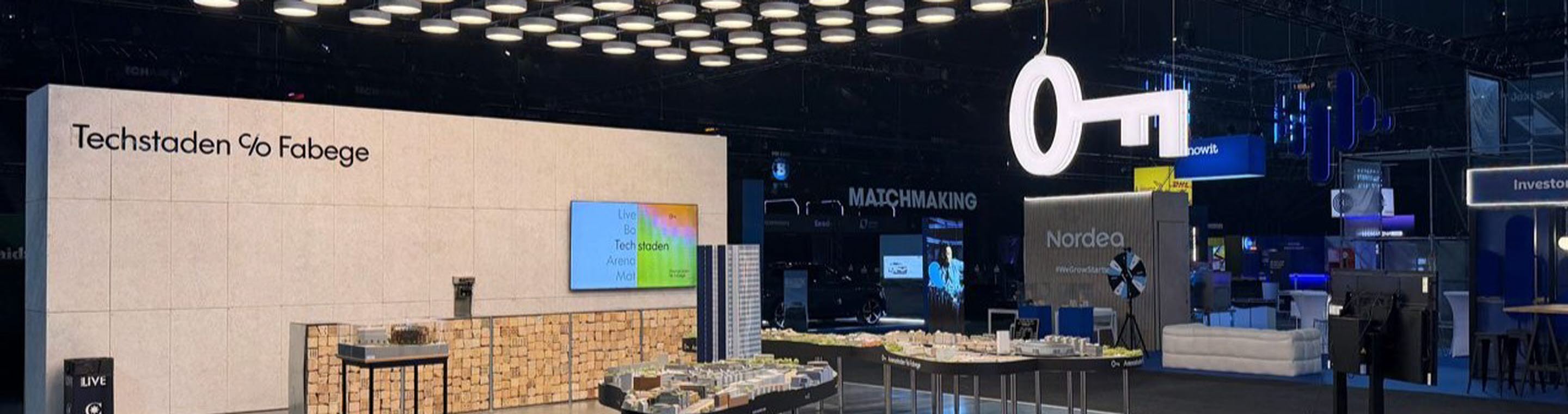Vår monter på Techarena i Strawberry Arena är byggd med minimalt klimatavtryck och bestod till 99% av återbrukat material.