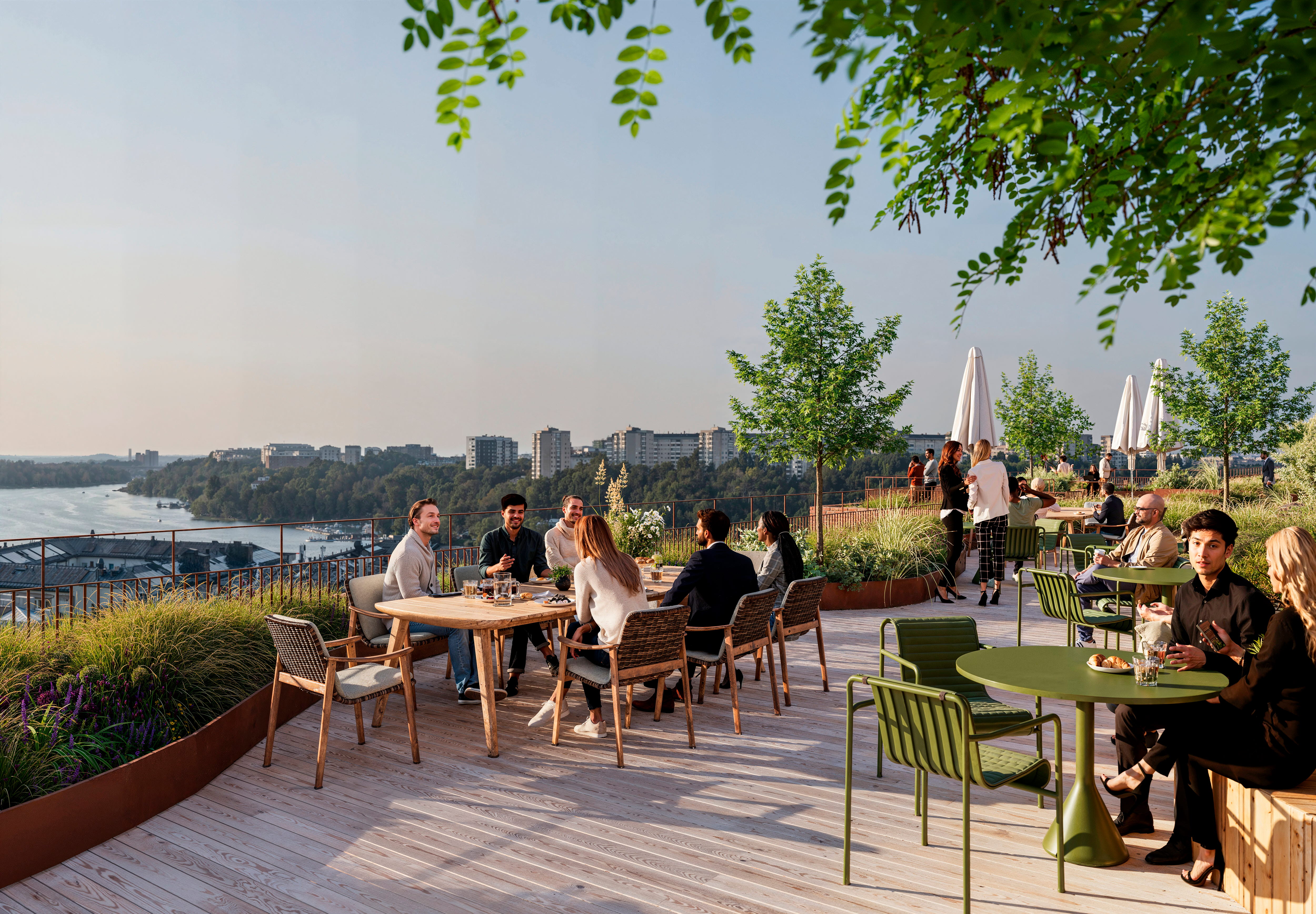 Tegelterrassen utvecklas till ett modernt och fullt utrustat kontorshus i ett av Västra Kungsholmens bästa lägen – mellan strandpromenaden och citypulsen. Här adderarar vi nya våningsplan, generösa takterrasser full service i huset – från reception och konferens till restaurang, gym och cykelparkering.