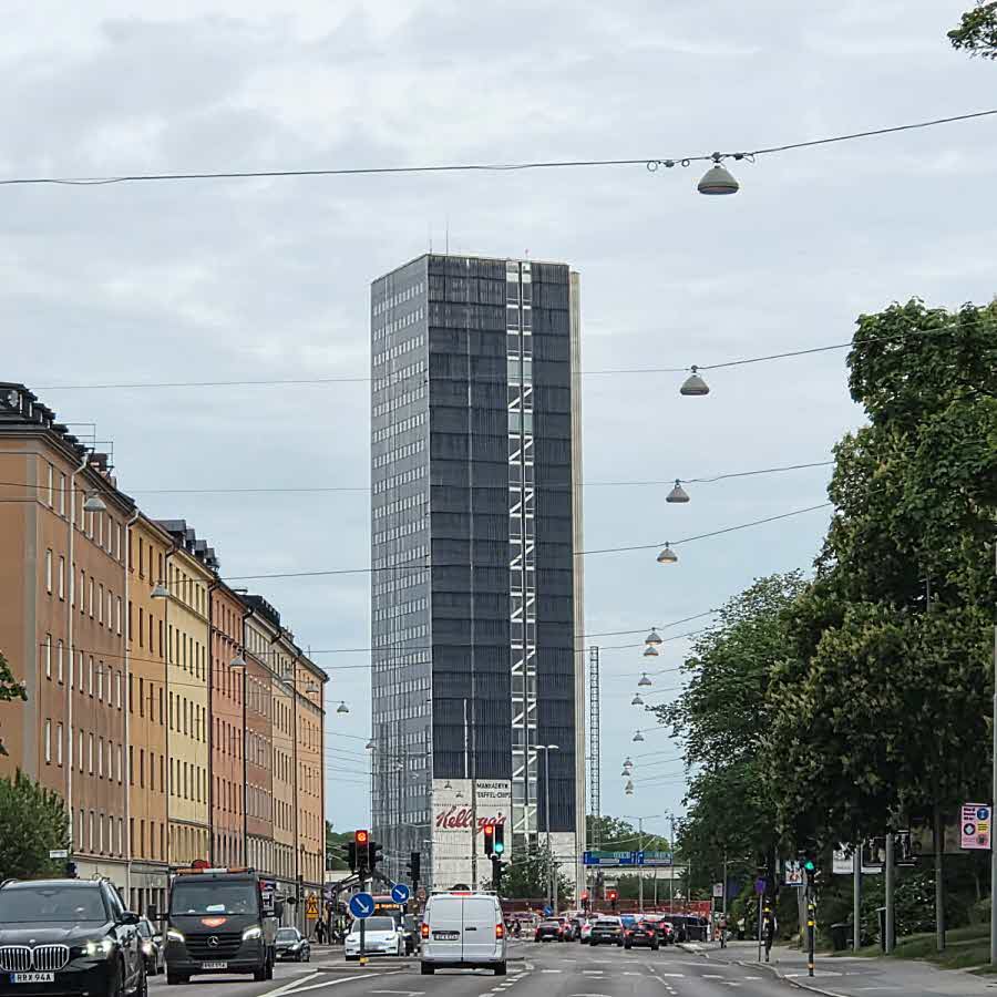 Historiska målnigar från 60-talet dyker upp. Fabege har under våren påbörjat en omfattande renovering av fastigheten, som beräknas vara klar i slutet av 2026. Fastigheten kommer att förädlas och uppgraderas såväl exteriört som interiört.