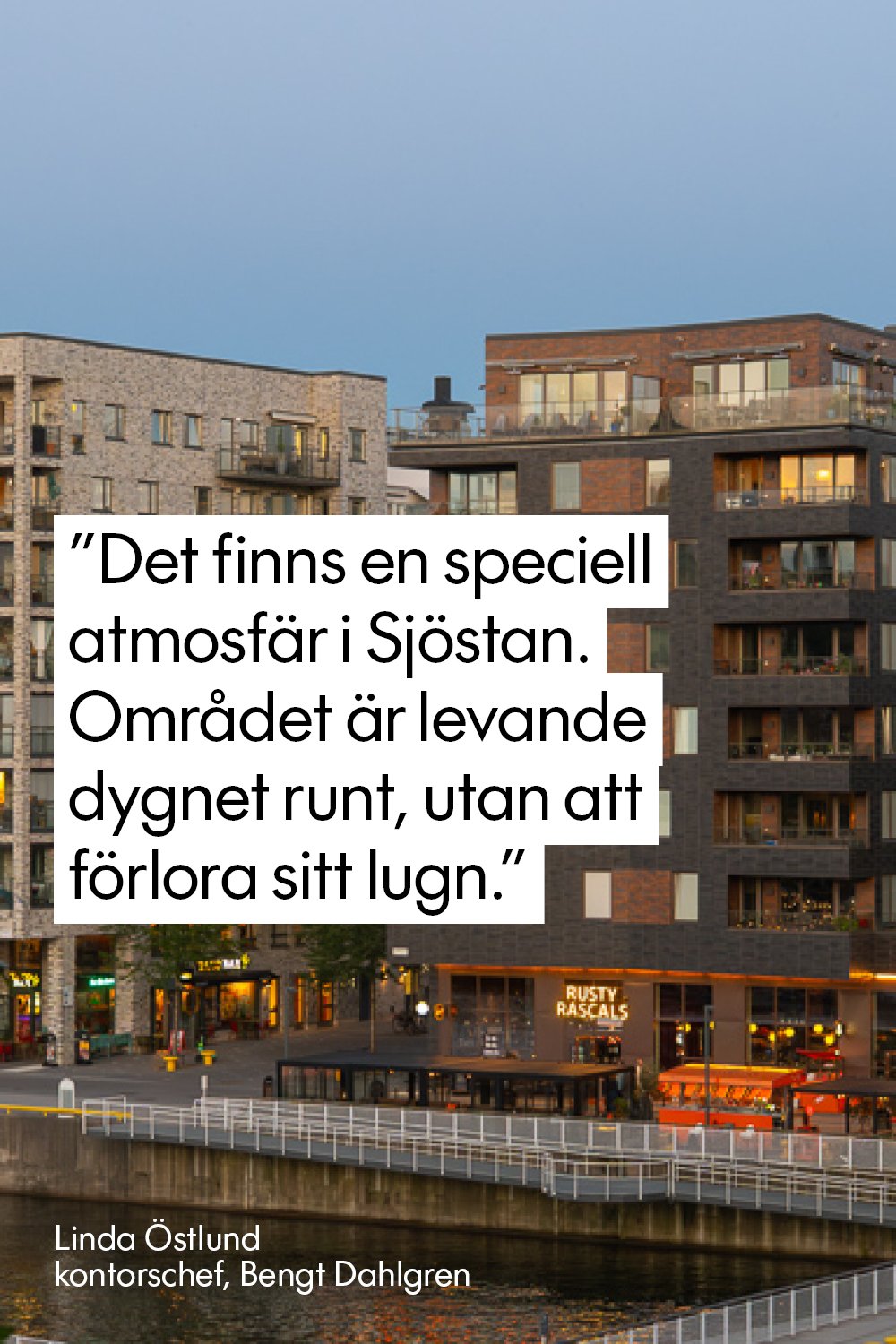 Livet har fler veckodagar än helgdagar – och i Sjöstan har vi bestämt oss för att göra vardagen så bra som möjligt. Här möts 21 000 boende, 10 000 arbetande, 8 gym och hela 83 restauranger och caféer i en fullt ut levande stadsdel. Allt som gör ert 9 till 5 trevligare, effektivare, smidigare – och roligare.